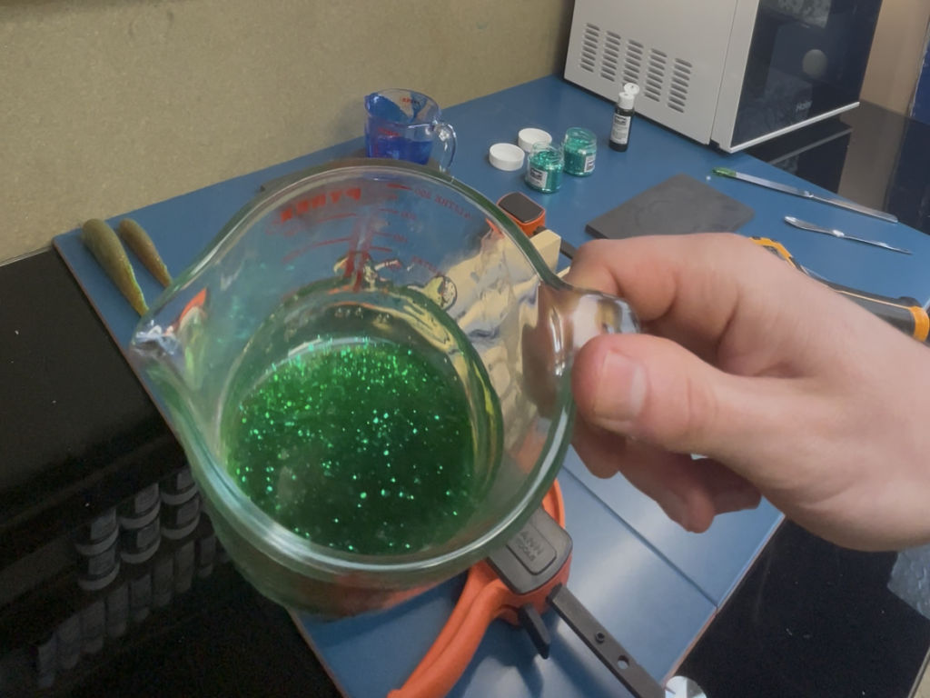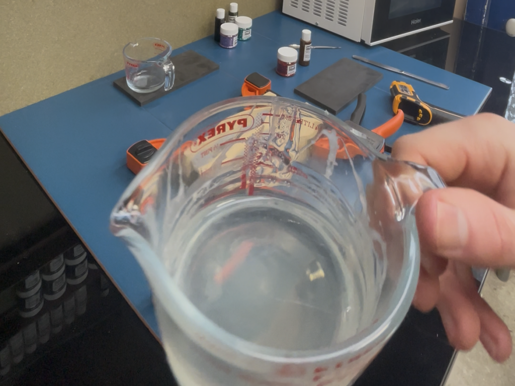 Verse le plastisol dans ton bécher en verre, puis chauffe-le par étapes au micro-ondes.