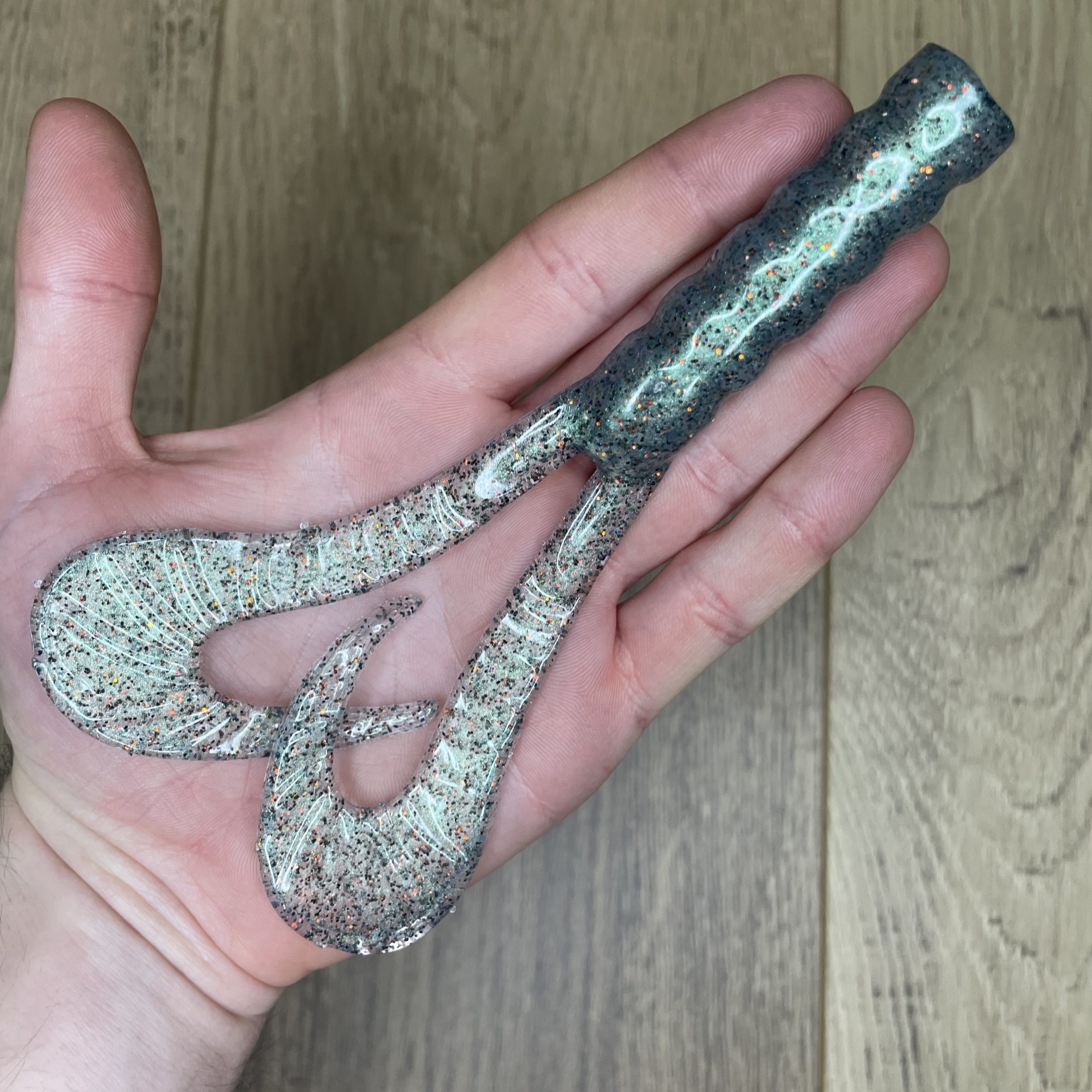Leurre souple handmade – Double Grub 15 cm – 26 g – Ghost Green