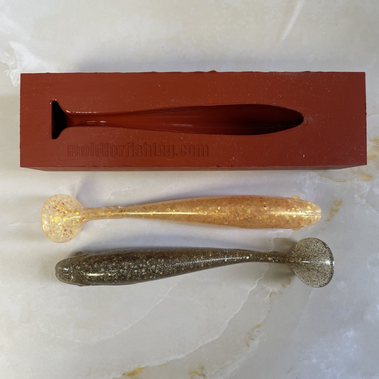 Il s’agit d’un moules en RTV de « Soft Swimbait » qui résistent à de grosses températures.. Il vous sera donc possible de  faire des centaines de couler sans que l’empreinte du moule se modifie. C’est une alternative pas chère aux moules en aluminium.