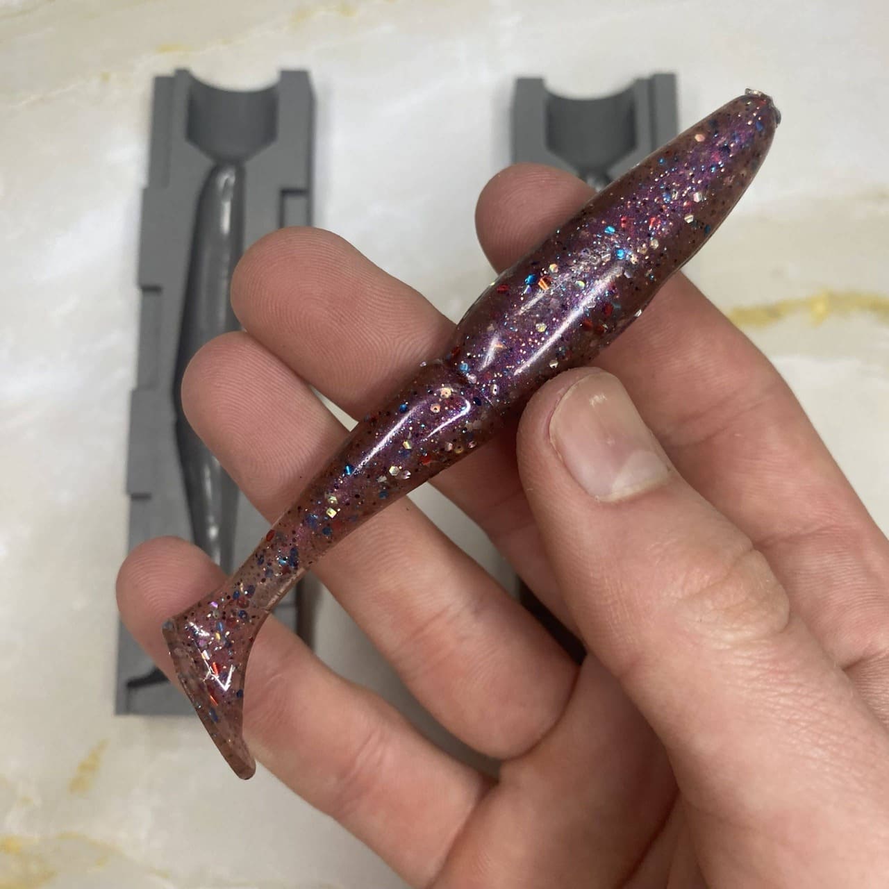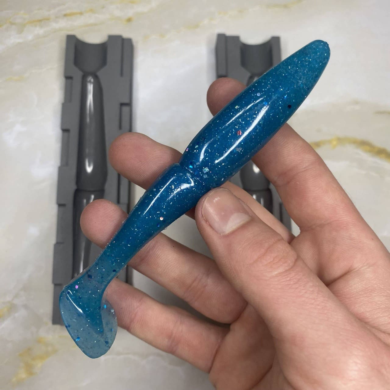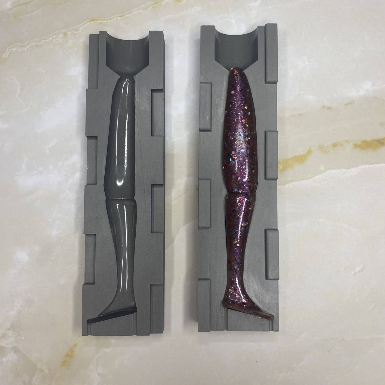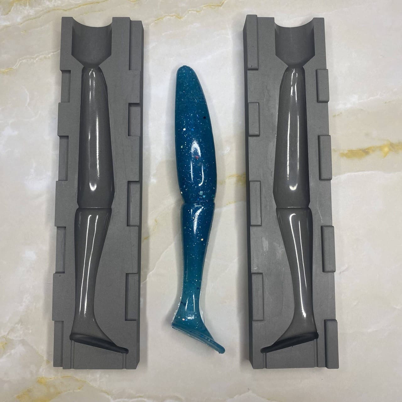 Il s’agit d’un moules rigides de « Soft Swimbait » qui résistent à de grosses températures. Il vous sera donc possible de faire des centaines de couler sans que l’empreinte du moule se modifie. C’est une alternative pas chère aux moules en aluminium.