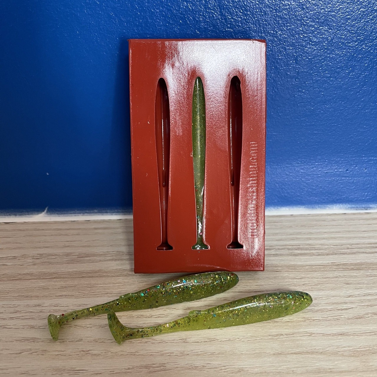 Il s’agit d’un moules en RTV de « Soft Swimbait » avec 3 empruntes qui résistent à de grosses températures.. Il vous sera donc possible de faire des centaines de couler sans que l’empreinte du moule se modifie. C’est une alternative pas chère aux moules en aluminium.
