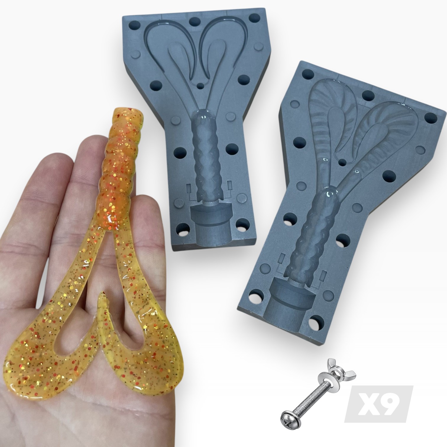 La surface de l’empreinte est lisse et brillante, garantissant un rendu professionnel des leurres dès la sortie du moule.