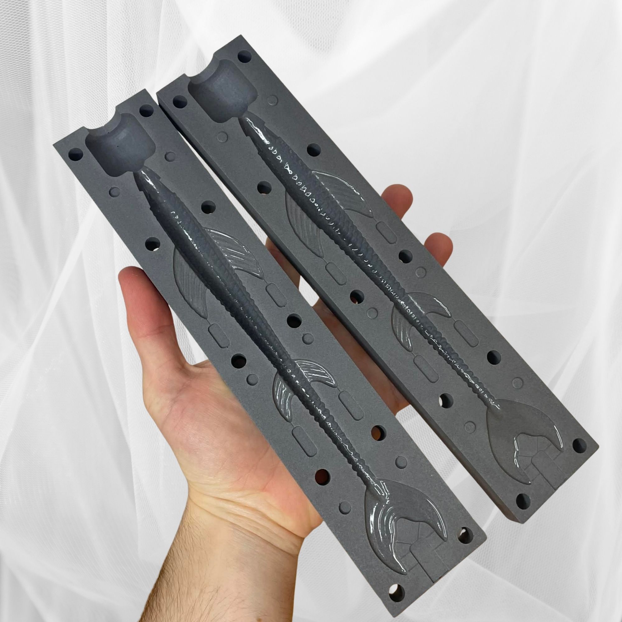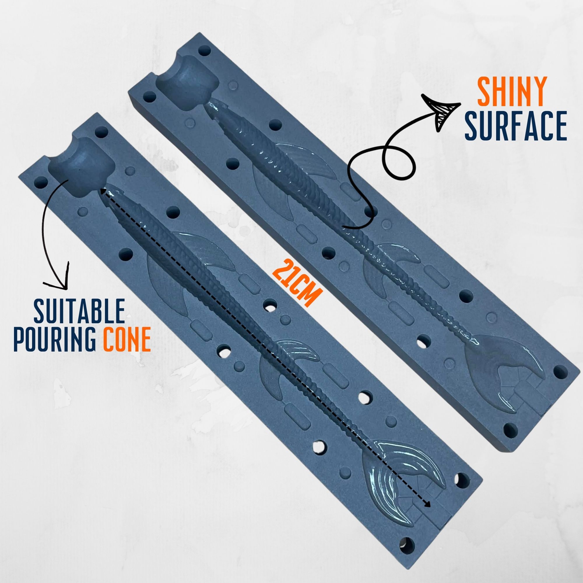 La surface de l’empreinte est lisse et brillante, garantissant un rendu professionnel des leurres dès la sortie du moule.