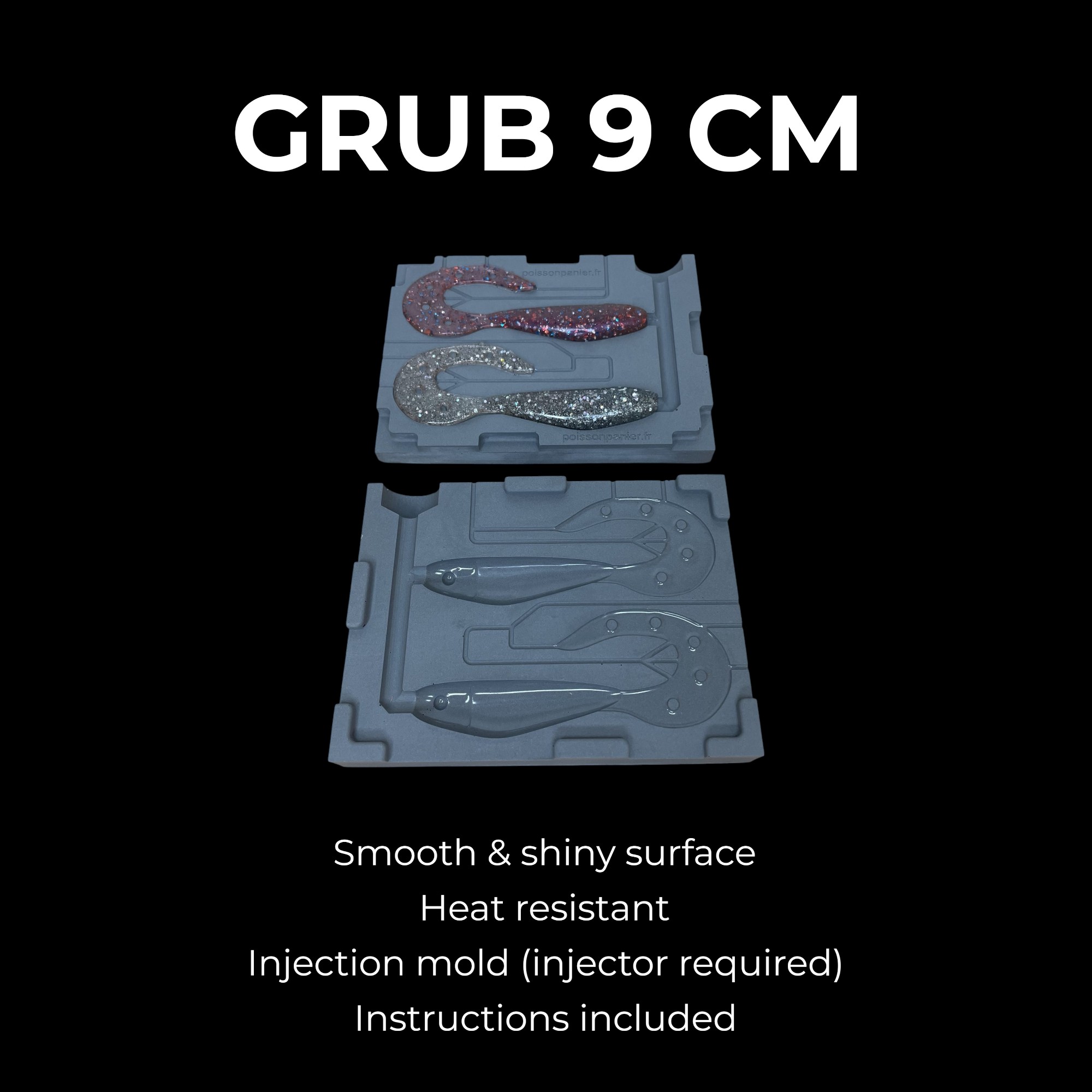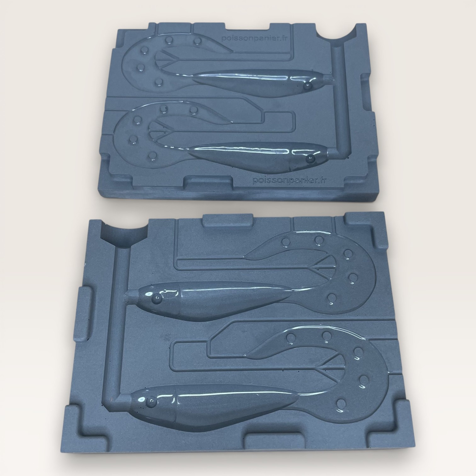 La surface de l’empreinte est lisse et brillante, garantissant un rendu professionnel des leurres dès la sortie du moule.