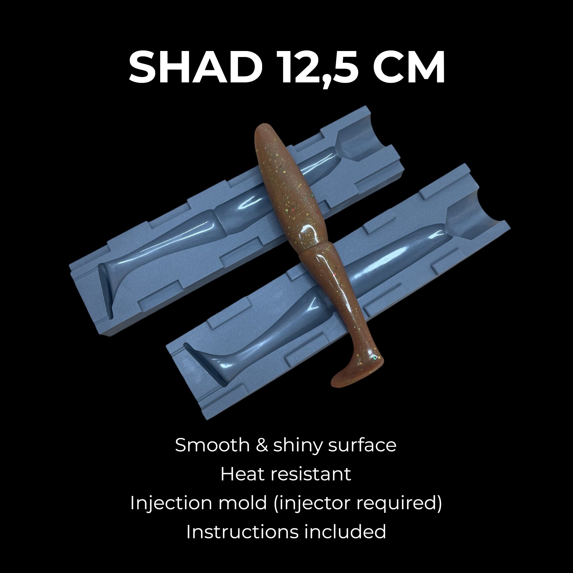 Moule pour fabriquer des leurres souples – shad 10 / 12,5 cm – Injection plastisol